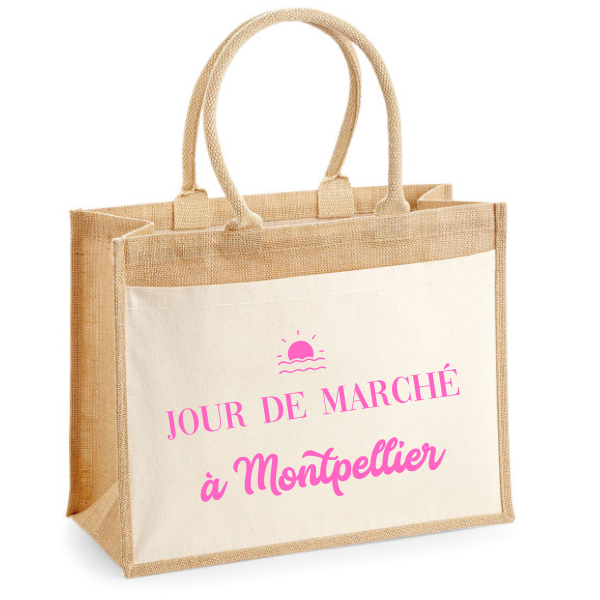 Cabas personnalisables selon vos envies, à offrir ou à s'offrir pour aller faire vos courses au marché de ... Merci de m'indiquer la ville que vous souhaitez, comme ici à Montpellier et le motif soleil
