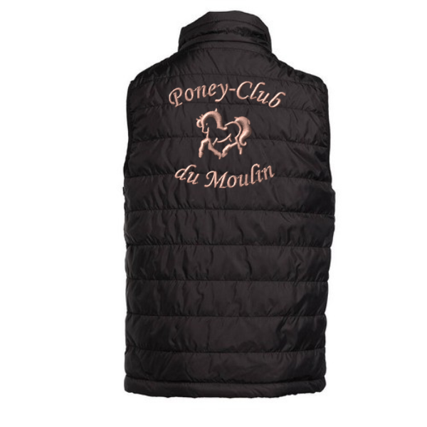 Bodywarmer tendance enfant déperlant et coupe-vent brodé du logo du poney-club du Moulin