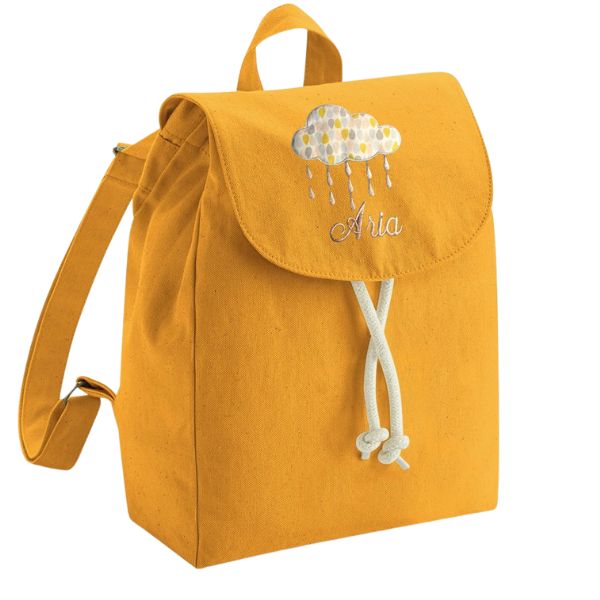Découvrez ce mini sac à dos en coton bio brodé du joli motif « Nuage » et du prénom de votre choix.