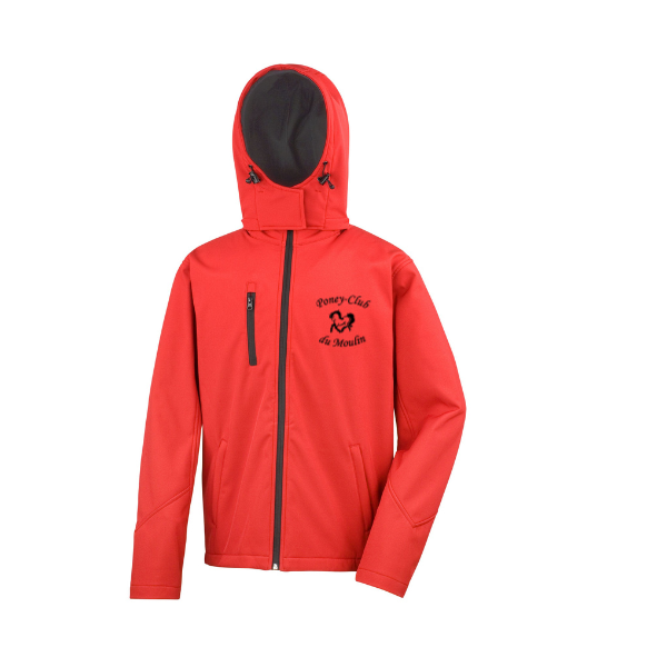 Accueil » Textile et accessoires » Boutique des Clubs » Poney-club du Moulin » Softshell Rouge avec capuche Moulin (Enfant / Ado)